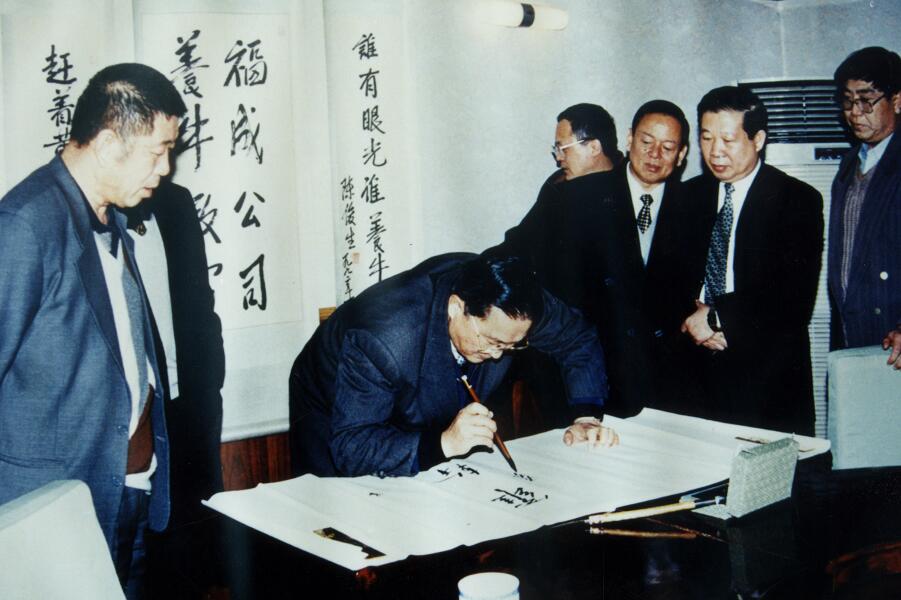 國務委員陳俊生親自為公司題寫“發(fā)展養(yǎng)牛事業(yè)、造福三河人民”